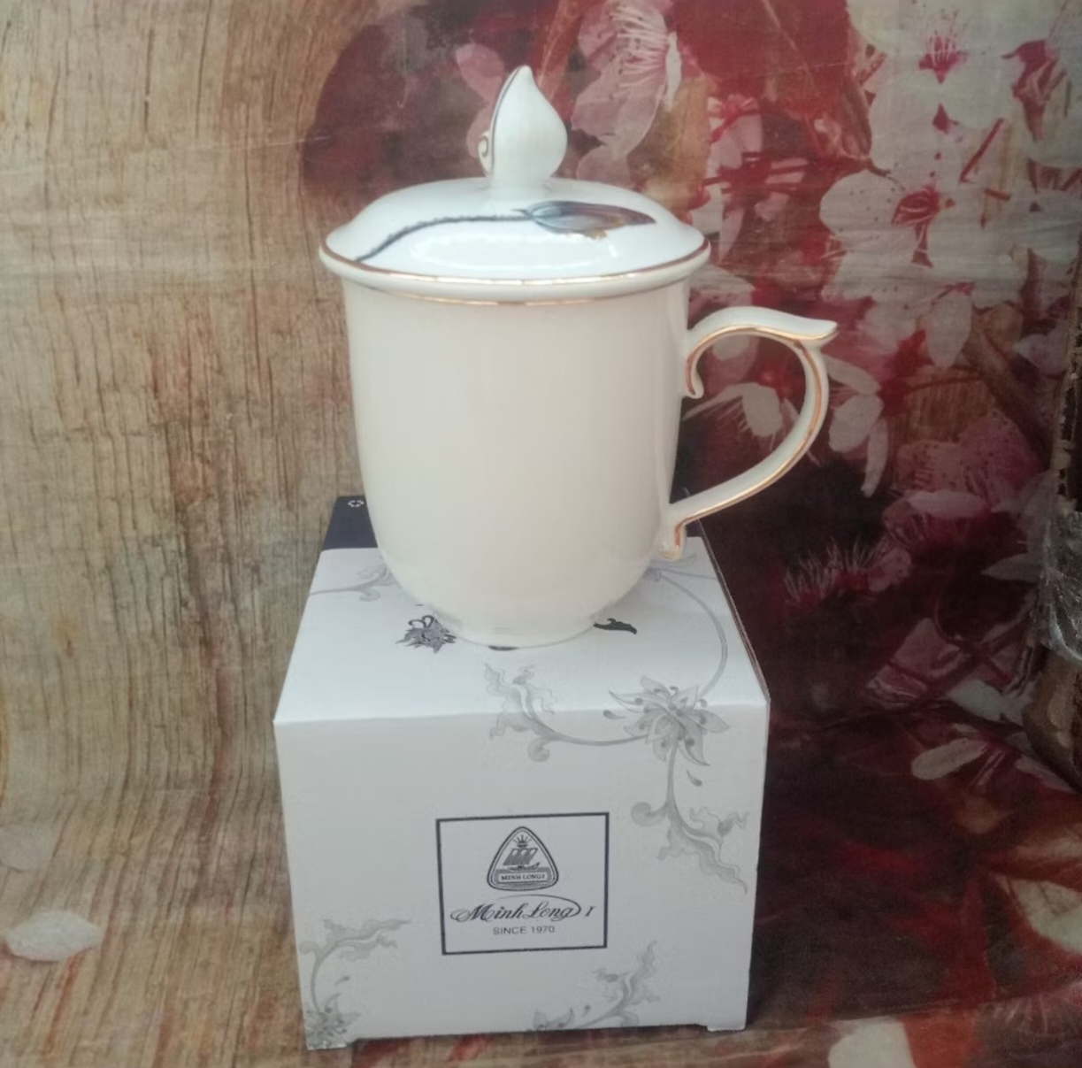 Mẫu đơn trắng viền vàng gốm sứ Minh Long 0.3L